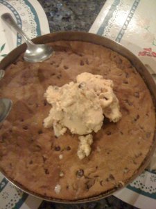 Enter BJ’s Brewhouse. BJ’s has an amazing dessert called the pizookie. It is essentially a freshly baked cookie topped with vanilla ice cream. It is the item that started my penchant for hot/cold dessert combinations (such as fried banana and ice cream, fried mango ice cream, etc).