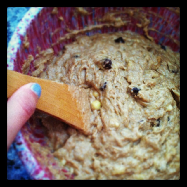 This year I made chocolate chip banana bread. I followed this recipe with some modifications:  using wheat flour instead of all purpose, egg whites instead of eggs, and throwing in some chocolate chips for good measure. The end result was delicious.